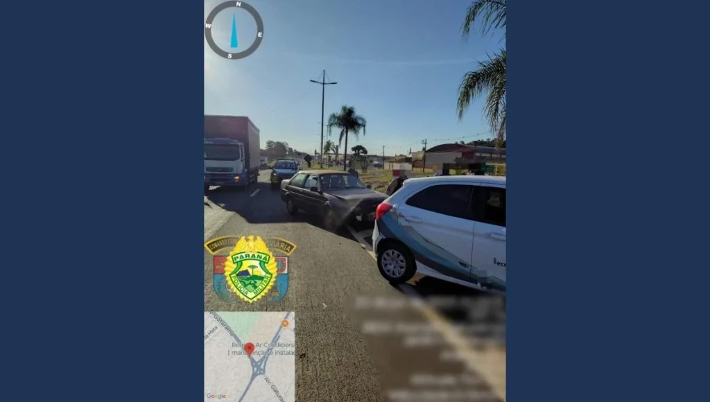 O acidente foi uma colisão traseira envolvendo um Ford/Ka branco, com placas de Sabáudia, e um Ford/Versailles vermelho, com placas de Sarandi. Ambos os veículos estavam com a documentação regularizada e foram liberados no local.