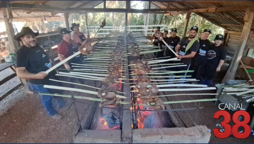 O almoço já começou a ser servido com o famoso churrasco no espeto de bambu, acompanhado de arroz, farofa, maionese e salada. Os cartões, vendidos a R$ 90,00, servem de três a quatro pessoas — e os organizadores lembram que é necessário levar pratos e talheres.