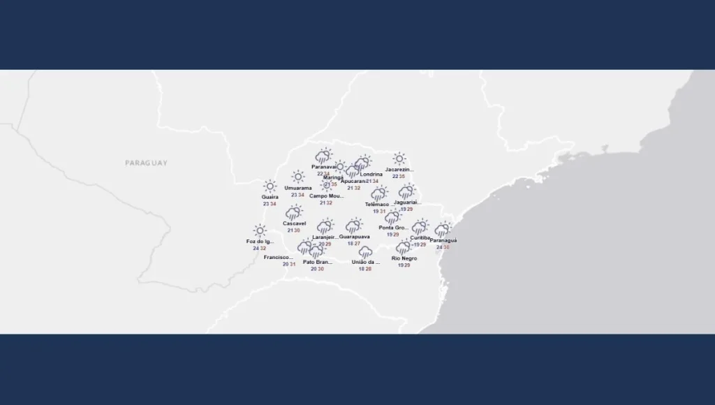 As temperaturas na sexta-feira (28) em Apucarana e região devem oscilar entre a mínima de 22ºC e a máxima de 33ºC, conforme o Simepar.