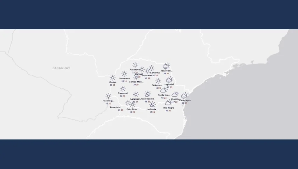 Principalmente durante a tarde não se descarta ocorrência de chuvas localizadas e rápidas, mas que cobrem pequenas áreas. Chance de chuva é maior entre o noroeste e o norte paranaense.