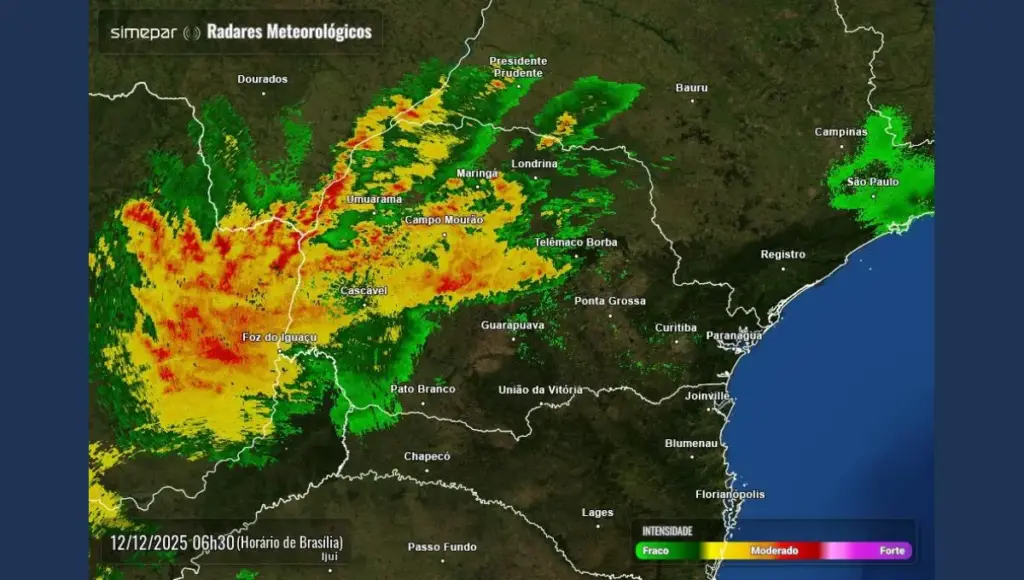 Na sexta-feira o tempo instável predomina em todo o Paraná, com chuvas e temporais, se destacando as faixas oeste, centro e norte.