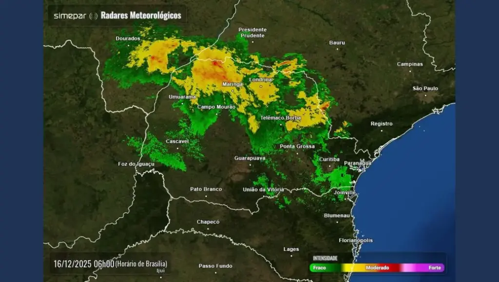 Assim, pancadas de chuva acompanhadas de trovoadas, avançam durante a madrugada pelas regiões paranaenses. No interior do estado, as condições são favoráveis para ocorrência de temporais localizados.