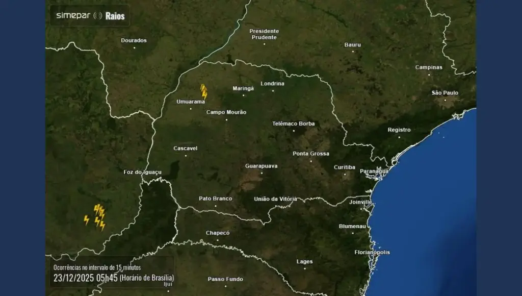 À tarde, não estão descartadas áreas de instabilidade localizadas, distribuídas de maneira irregular pelas regiões paranaenses, com maior possibilidade de ocorrerem na faixa oeste do estado (risco maior de tempestades entre o Oeste e Sudoeste paranaense).