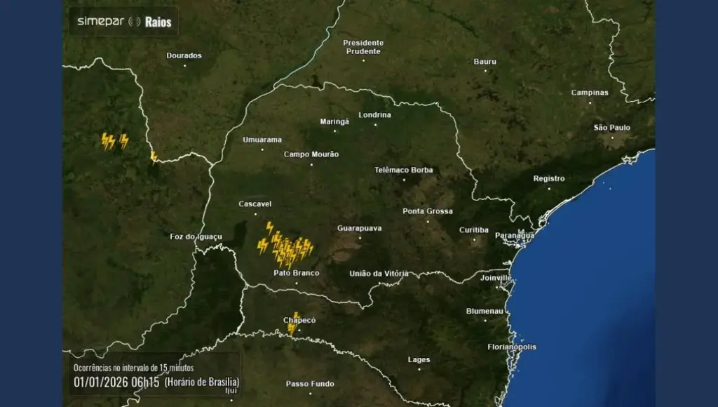 A primeira quinta-feira do ano de 2026 será marcada pela persistência de chuvas sobre o território paranaense.