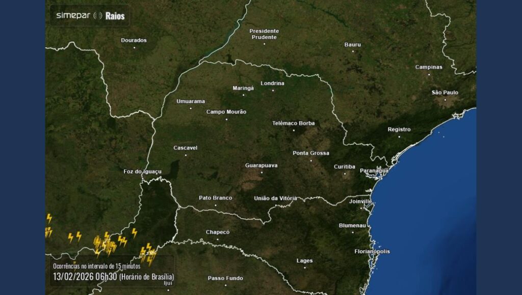 Ao final do dia, alguns pontos poderão ter registrado acumulados superiores a 50 mm. As temperaturas máximas permanecerão elevadas, próximas aos 30 °C. Especialmente no Litoral Paranaense, os termômetros poderão se aproximar dos 36 °C e 38 °C.