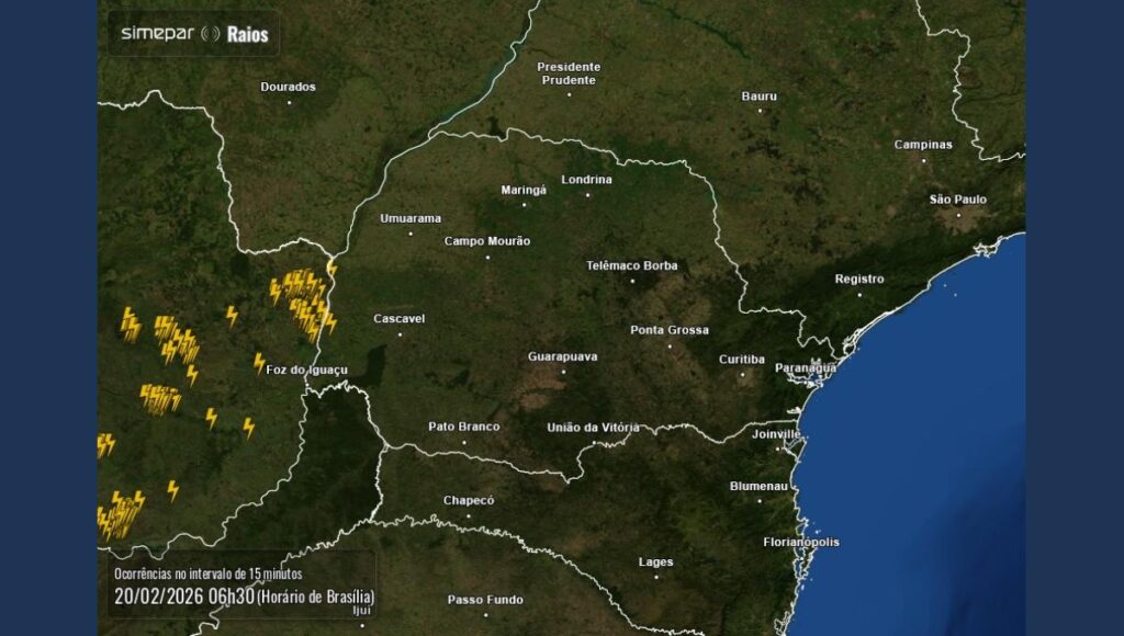 No sábado, o tempo segue instável no Paraná. O sistema de baixa pressão continua influenciando nas condições atmosféricas, sustentando a instabilidade especialmente no interior do estado. Continua abafado, mas com temperaturas máximas ligeiramente mais amenas em comparação aos dias anteriores.