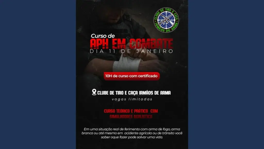 O Clube de Tiro e Caça Irmãos de Arma, em Mauá da Serra, promove neste domingo, dia 11, o Curso de APH em Combate (Atendimento Pré-Hospitalar), voltado para situações de confronto armado, lesões por arma branca e defesa pessoal.
