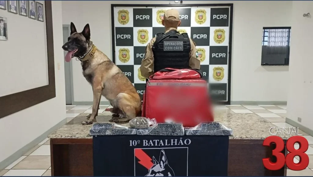 O suspeito de 21 anos, foi abordado nas proximidades de uma Faculdade em Apucarana enquanto realizava a entrega de entorpecentes disfarçado de entregador de aplicativo. Durante a ação, os policiais encontraram 3,2 kg de maconha e 2 gramas de haxixe dentro da bolsa de delivery utilizada pelo detido.