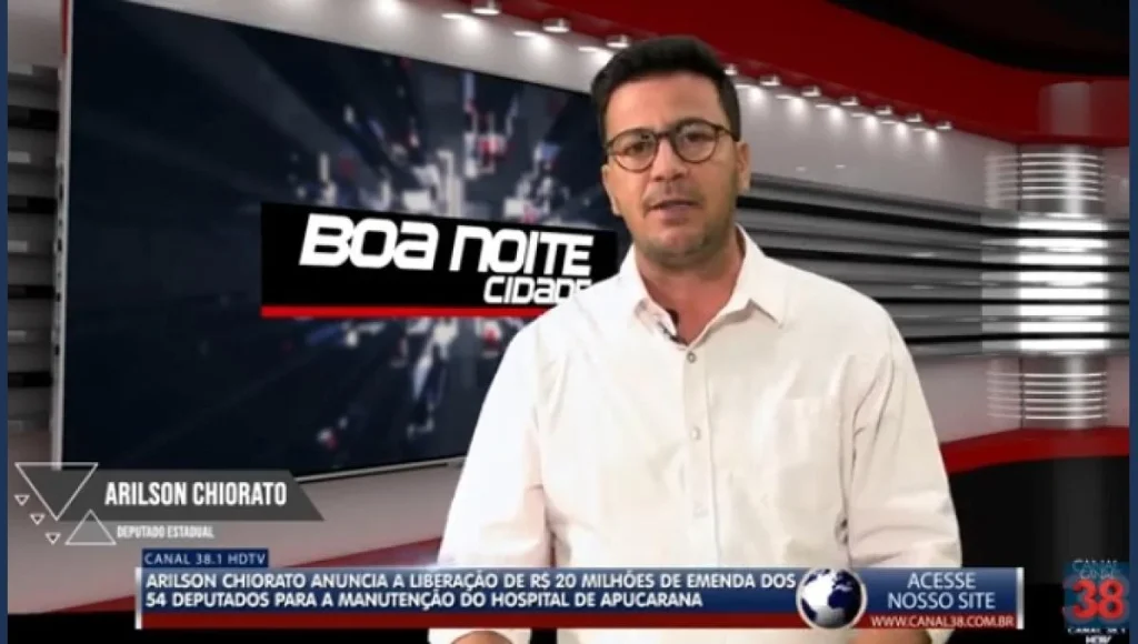 Durante participação no programa Boa Noite Cidade, comandado pelo apresentador Wilson Mota no Canal 38, o deputado estadual Arilson Chiorato, presidente do PT-PR, fez um anúncio. Ele revelou, pela primeira vez, a liberação de R$ 20 milhões em recursos para a manutenção do Hospital de Apucarana (HMA), aprovado por 54 deputados estaduais.