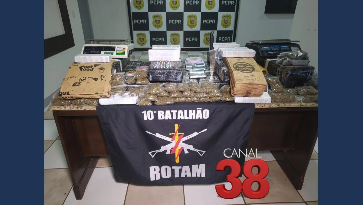 Em cumprimento a um mandado de busca e apreensão expedido pelo Fórum da Comarca de Apucarana, uma equipe da ROTAM realizou uma operação na tarde de quarta-feira (23) na Rua Dom Armando Lombardi, no bairro Vila Formosa, e apreendeu grande quantidade de entorpecentes escondidos em uma residência que, segundo denúncias, funcionava como “cofre” de uma rede de tráfico na modalidade “delivery” na cidade.