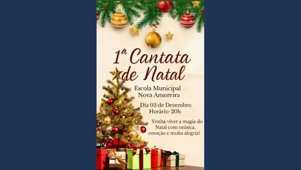 A secretaria municipal de Educação convida a comunidade para participar da 1° Cantata de Natal no Distrito de Nova Amoreira.
