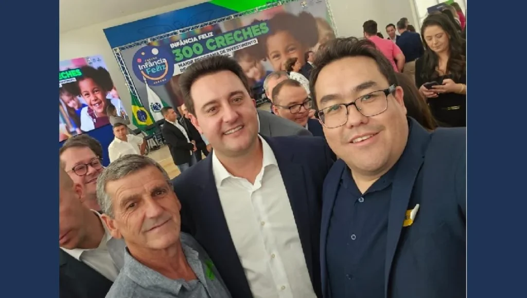 O Governador Carlos Massa Ratinho Junior e o secretário Rogério Carbone, anunciaram a contemplação da nova creche ao prefeito Aquiles Takeda e ao vice-prefeito, Walmir Peres.