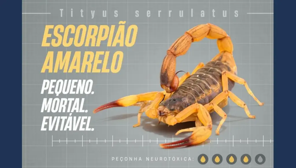 A ação chama atenção para o perigo do escorpião amarelo, mostra onde eles são encontrados, como prevenir e o que fazer em caso de picada. Um vídeo e um alerta em áudio com esclarecimentos e cuidados serão veiculados nas TVs e rádios das regiões com maior incidência, além de campanhas nas redes sociais da Sesa.