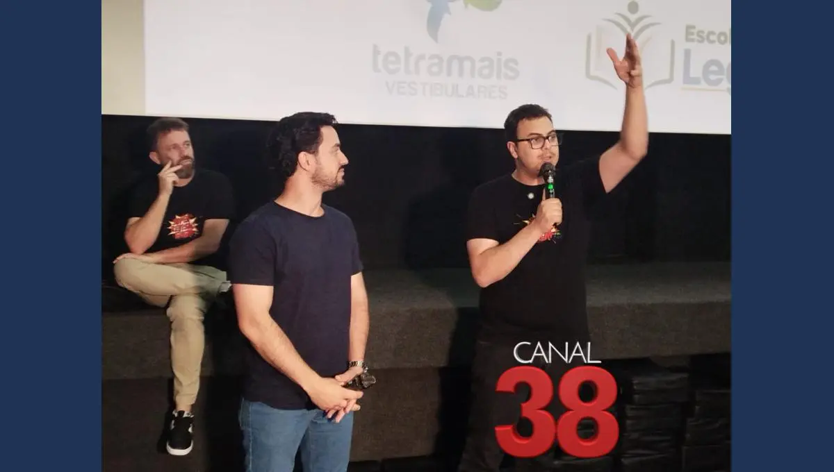 “Uma alegria a gente poder prestigiar aqui o nosso vereador Guilherme Livoti, autor dessa ideia, enfim, toca a Escola do Legislativo na Câmara Municipal, a Escola Tetra Mais nessa parceria com a Câmara Municipal, a Prefeitura também, a gente entrou aí com um pouco do suporte do que está acontecendo aqui, então parabenizar todo mundo envolvido e em especial os alunos, esses jovens, adolescentes que saíram de casa duas vezes para vir aqui, aprender, ouvir dicas importantes. Eu não tenho dúvida: grandes professores estão aqui, inclusive alguns deles foram meus professores lá na minha época também de escola, de ensino médio, de vestibular. Eu tenho certeza que com a primeira e a segunda aula eles vão ter notas melhores no Enem e isso vai dar outras oportunidades pra eles, porque no Enem, às vezes um ponto, dois, cinco pontos muda tudo — deixa de ir pra uma instituição pra ir pra outra, às vezes fica fora, de fato perde a oportunidade, perde a vaga por conta de pontuações muito apertadas.
