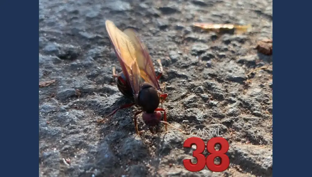 “E agora estamos sendo invadidos por formigas gigantes, né? Calma, calma, vou explicar pra vocês. Essa aí é a formiga saúva, a formiga cortadeira. O que está acontecendo agora é a revoada dela, é a noite de núpcias. Ela sai do ninho, voa, acasala com o macho, e depois do acasalamento desce até o chão, arranca suas próprias asas e começa a cavar um buraquinho. E nesse buraquinho ela vai formar a colônia dela”, explicou o biólogo.