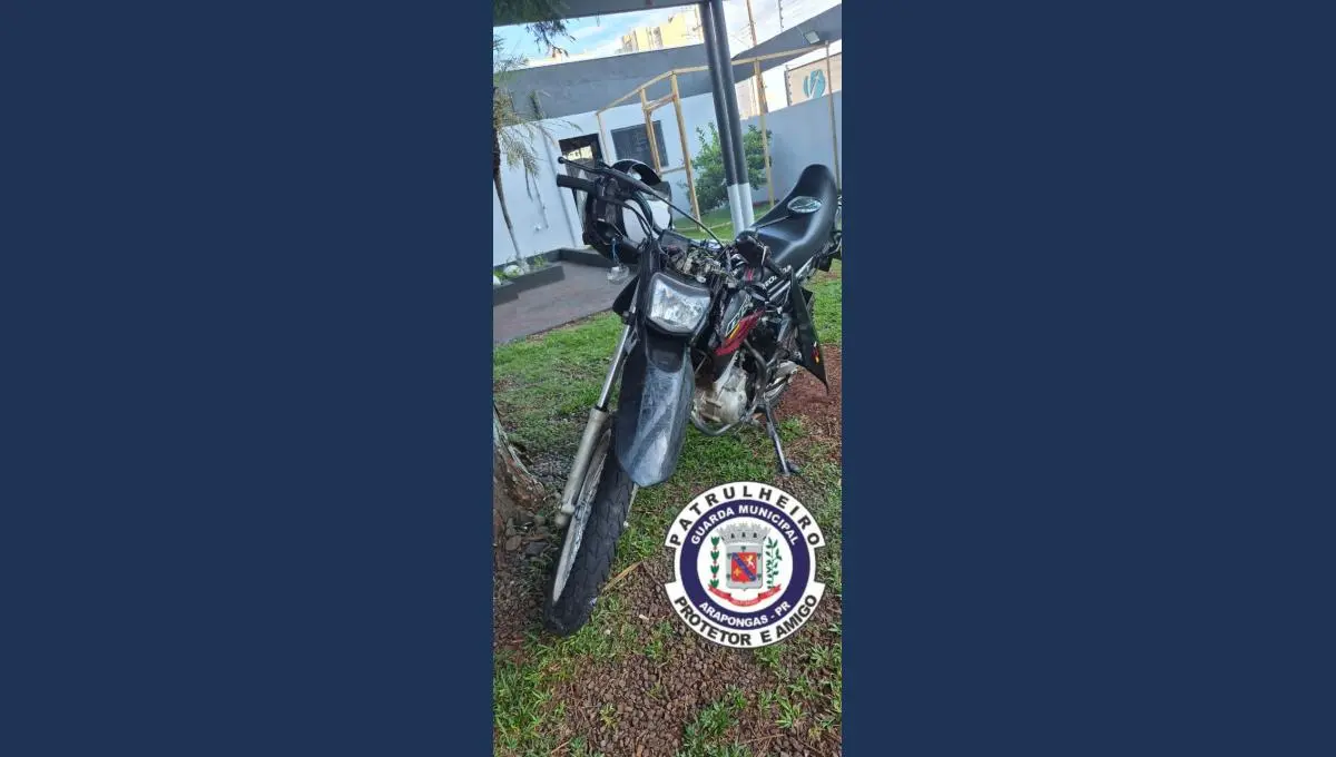 Durante patrulhamento preventivo, a equipe avistou uma motocicleta Honda Bros vindo da cidade de Rolândia em direção a Arapongas. Ao notar a presença da viatura, o condutor demonstrou nervosismo, saiu da rodovia e passou a trafegar pela marginal em alta velocidade. Na checagem da placa, os agentes constataram que o veículo era baixado em leilão.