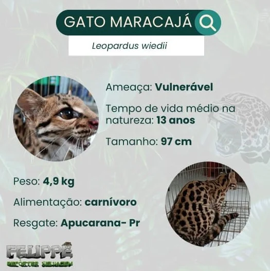 O gato-maracajá, com nome científico Leopardus wiedii, é um felino nativo das florestas tropicais da América Central e do Sul. Sua população está em declínio devido à destruição de habitats e à caça ilegal, o que torna a preservação de cada indivíduo ainda mais importante.
