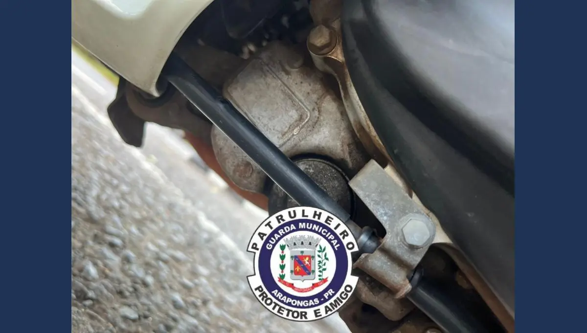 A Guarda Municipal de Arapongas apreendeu uma motocicleta com sinais evidentes de adulteração na manhã desta quarta-feira (28), durante patrulhamento de rotina no Centro da cidade, na Rua Pombas.