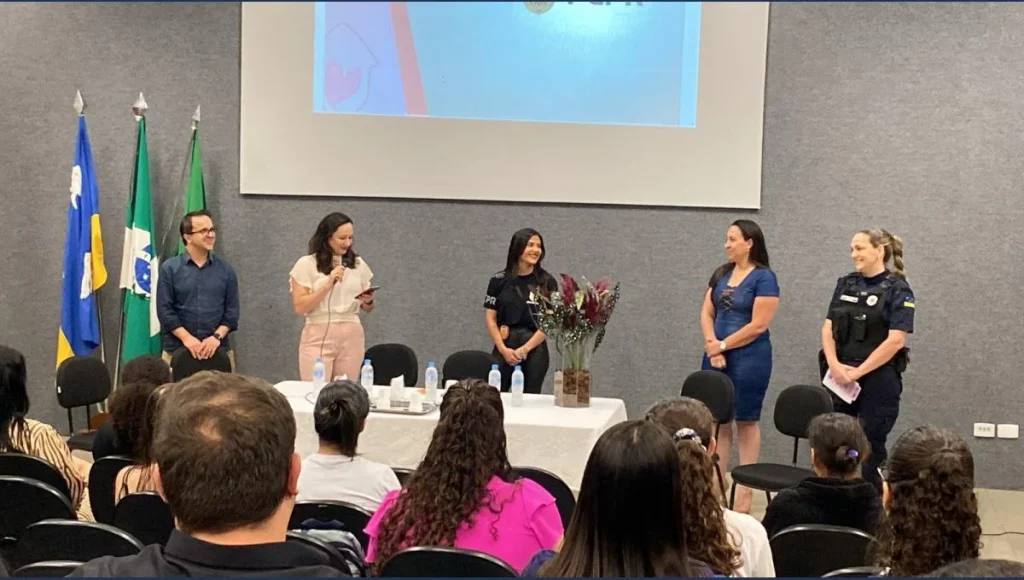 No início da noite de 05 de novembro, às 18h45, cerca de 100 alunos dos cursos de Enfermagem, Psicologia, Farmácia e Direito da Faculdade Anhanguera, localizada na PR-218, Jardim Primavera, em Arapongas, participaram de uma palestra sobre a Lei Maria da Penha e violência doméstica.