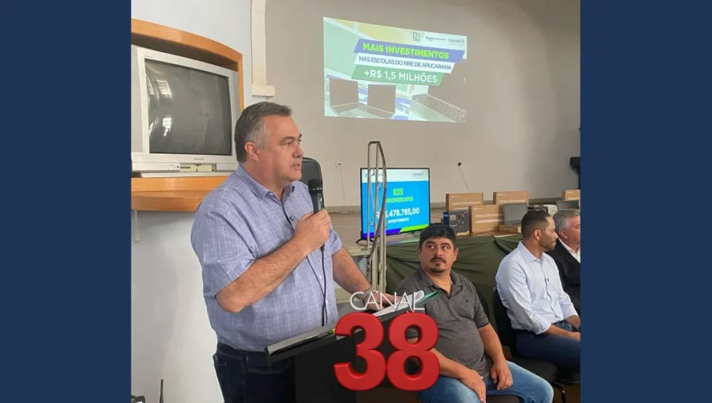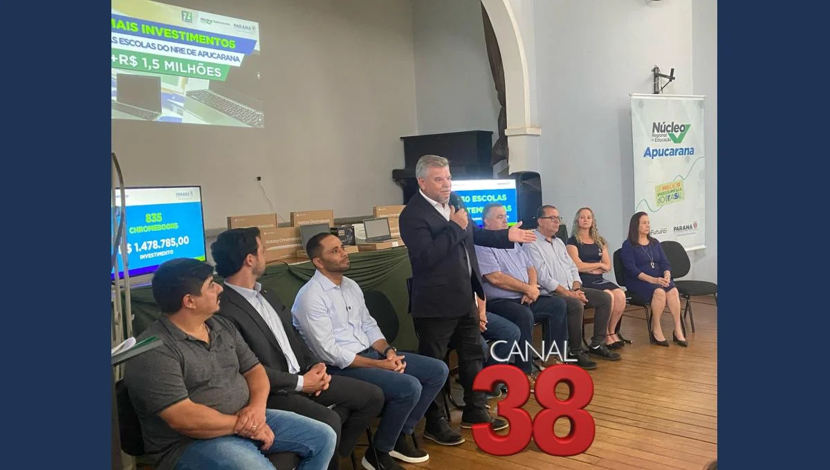 “Quero parabenizar todos os educadores que fazem parte do Núcleo Regional de Educação de Apucarana, em especial o professor Vladimir, que sempre está presente junto aos diretores, verificando as necessidades das escolas. O governador Ratinho Júnior tem investido muito na educação, e isso se reflete no Paraná ter a melhor educação do Brasil. O projeto das escolas cívico-militares, do qual fui relator na Assembleia, é um grande exemplo. Além disso, investir em tecnologia é essencial, pois vivemos no mundo da informação, e esses Chromebooks e fones de ouvido vão garantir um ensino mais dinâmico e acessível para os estudantes”, concluiu Jacovós.
