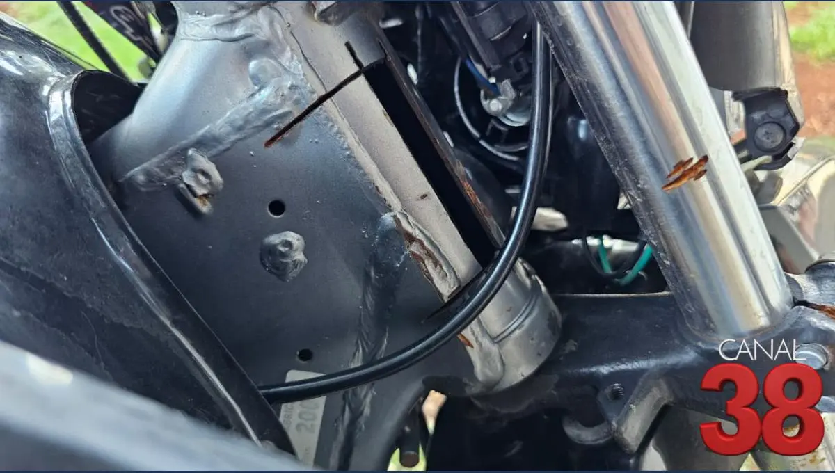 Ainda conforme a Guarda Municipal, a motocicleta apresentava irregularidades, incluindo indícios de ter sido baixada em leilão e ausência de número de chassi, constando apenas o número do motor.
