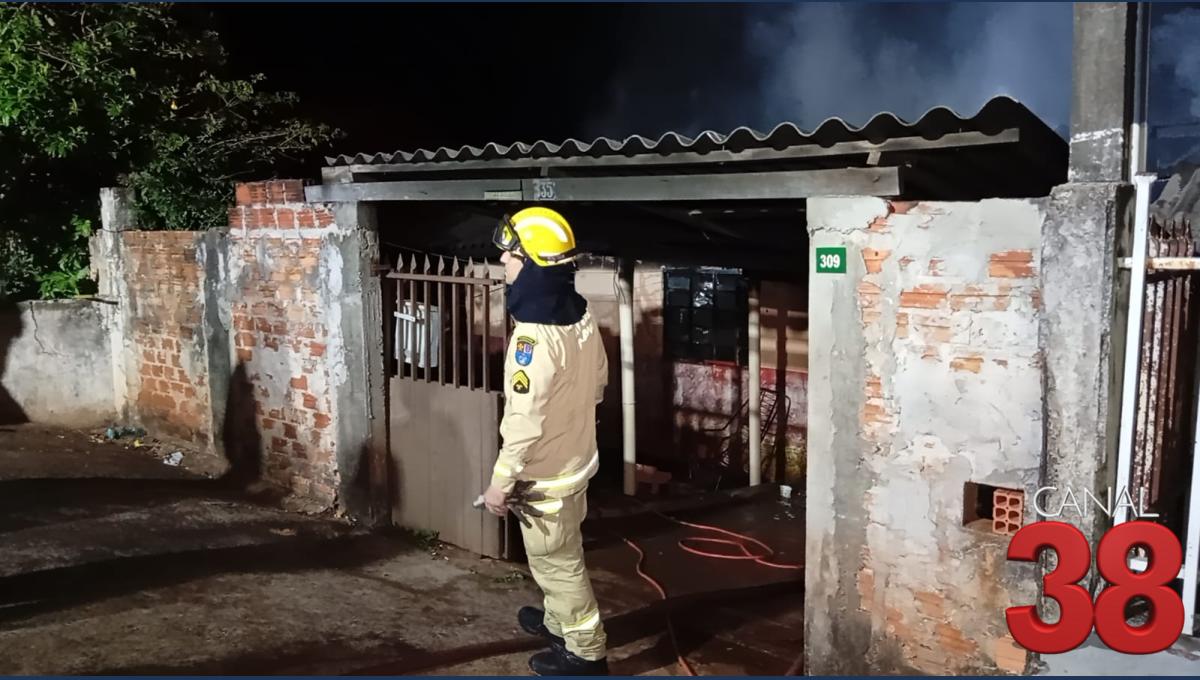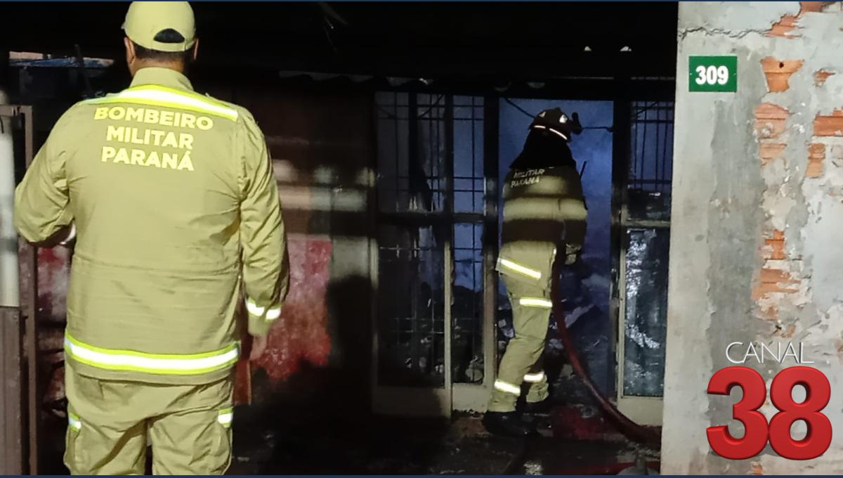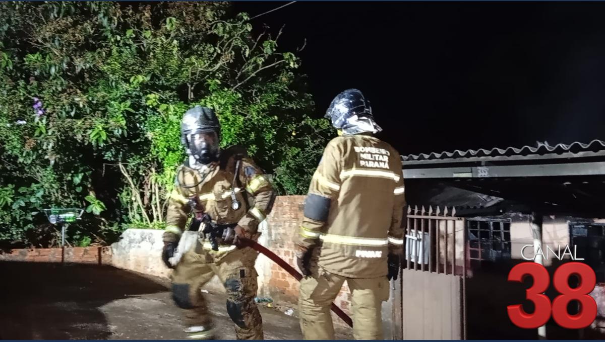 Um incêndio mobilizou equipes do Corpo de Bombeiros, Polícia Militar e moradores na madrugada deste domingo no Jardim Diamantina, em Apucarana.