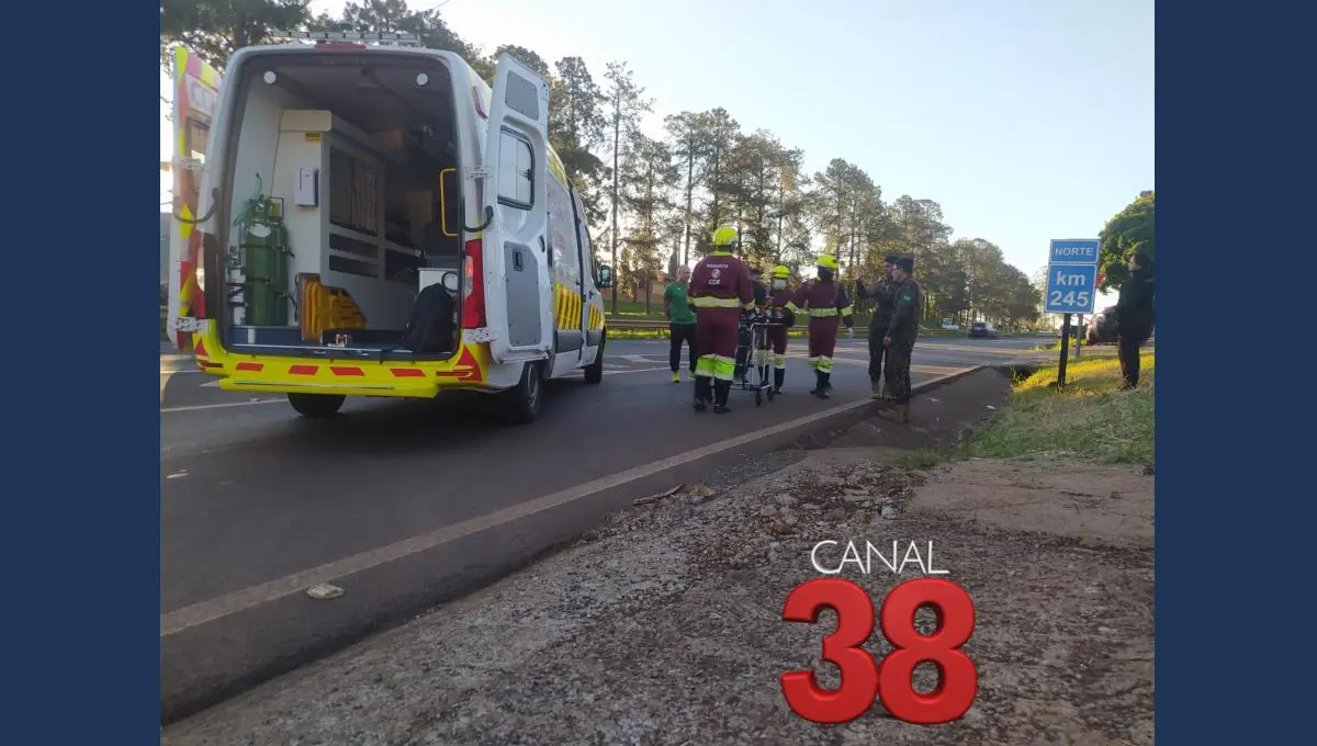Na tarde desta terça-feira (21), um homem de 58 anos, ficou ferido após ser atropelado por um carro na Marginal da BR-376, nas proximidades do 30º Batalhão de Infantaria Mecanizado (30º BIMec), sentido Califórnia–Apucarana.