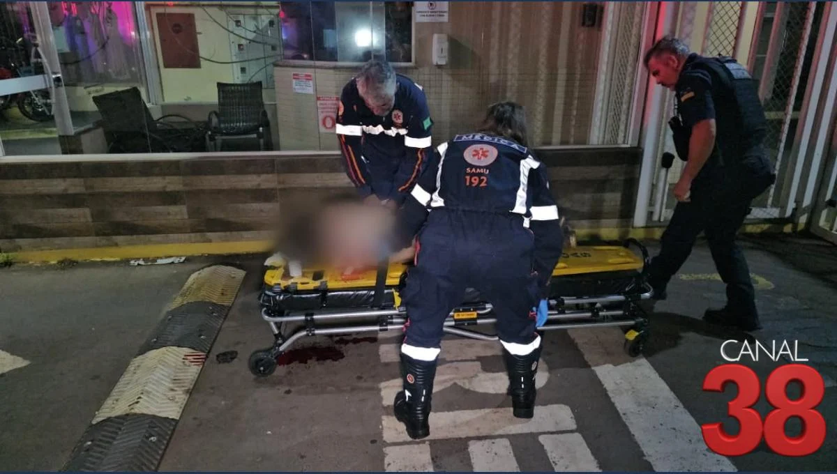 Durante os primeiros atendimentos, o homem foi imobilizado e colocado na ambulância, sendo encaminhado às pressas ao Hospital Norte do Paraná (Honpar II). A princípio, ele apresentava dois ferimentos: um no tórax e outro no braço.