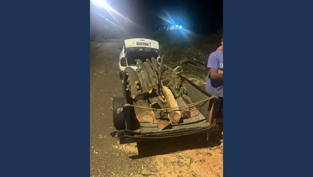 De acordo com o GCM Richard, a equipe foi acionada após uma denúncia anônima relatando que um indivíduo estaria cortando uma árvore sem autorização. “A equipe recebeu a denúncia de que o indivíduo estaria realizando o corte de uma árvore próximo ao Afonso Camargo. Chegando ao local, nos deparamos com ele realizando o corte e carregando essa madeira ilegal na carretinha do carro dele”, relatou.