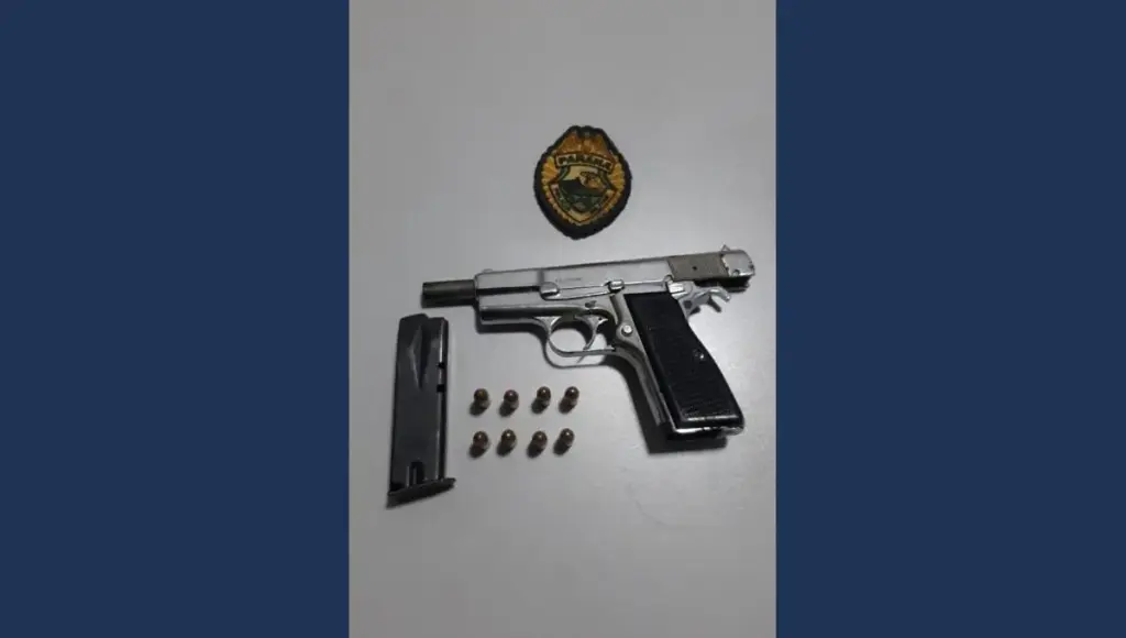 Durante a revista, o condutor admitiu portar uma arma e confessou não possuir documentação. Os militares encontraram uma pistola calibre 9mm, marca F.N. Browning, com oito cartuchos intactos. A numeração da arma estava ilegível.