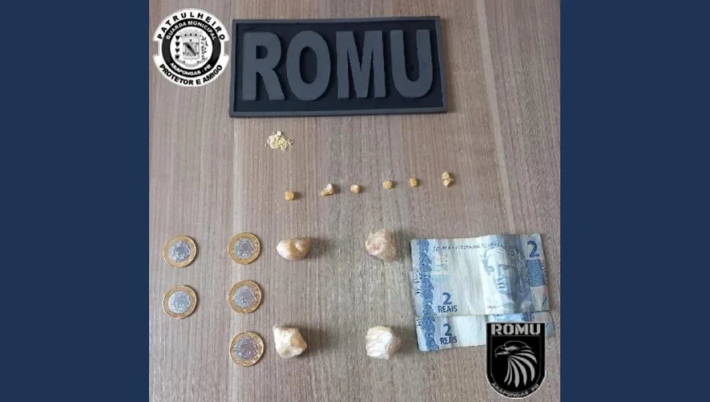 Ao ser questionado sobre a posse de algo ilícito, o elemento suspeito admitiu que carregava algumas pedras de crack para uso pessoal. Durante a revista, os policiais encontraram seis porções da substância, totalizando 2,1 gramas, escondidas em um porta-óculos, além de R$ 9 em dinheiro.