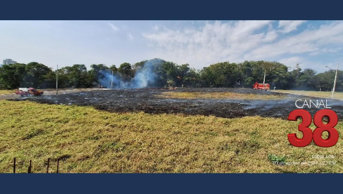 O fogo consumiu um lote de extensão significativa, gerando preocupação entre os moradores da área.