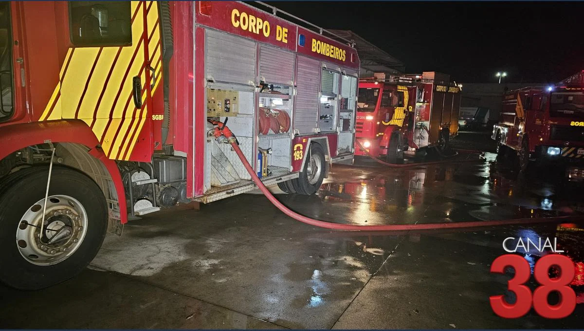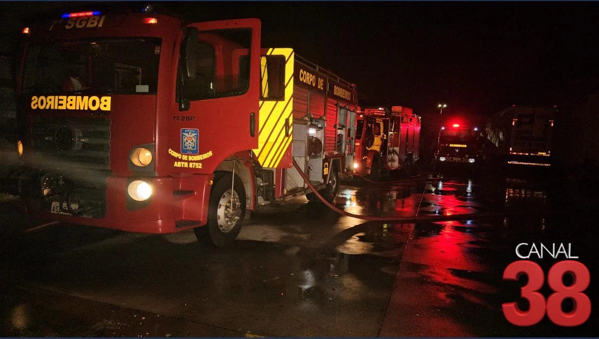 Foram deslocadas três equipes nossas para o local, com uma guarnição de sete bombeiros militares. Conseguimos adentrar a empresa, tivemos que fazer o arrombamento do portão para ter acesso ao fundo dessa empresa, onde estava concentrado o incêndio, e conseguimos controlar as chamas para que elas não passassem para dois outros barracões dessa mesma empresa.”