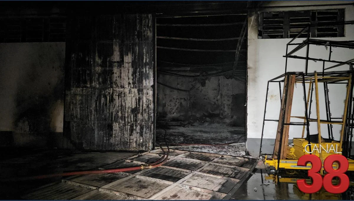 “Foram utilizados aproximadamente 10 a 12 mil litros de água no combate ao incêndio. O barracão do meio foi completamente tomado pelas chamas e, inclusive, o teto veio ao solo durante o combate.