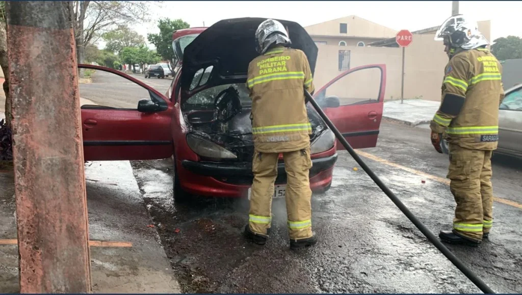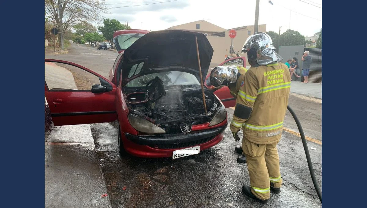 No final da tarde desta quinta-feira (28), um incêndio em veículo Peugeot 206 mobilizou equipes do Corpo de Bombeiros na Rua Independência, esquina com a Rua Castro Alves, no Jardim América, em Apucarana.