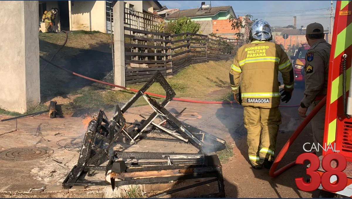 Na manhã desta terça-feira (19), por volta das 8h, um incêndio destruiu uma residência localizada no entroncamento da Rua Ângela Cristina Sttopa com a Rua Diácono José Marcato, no Residencial Fariz Gebrim, em Apucarana.