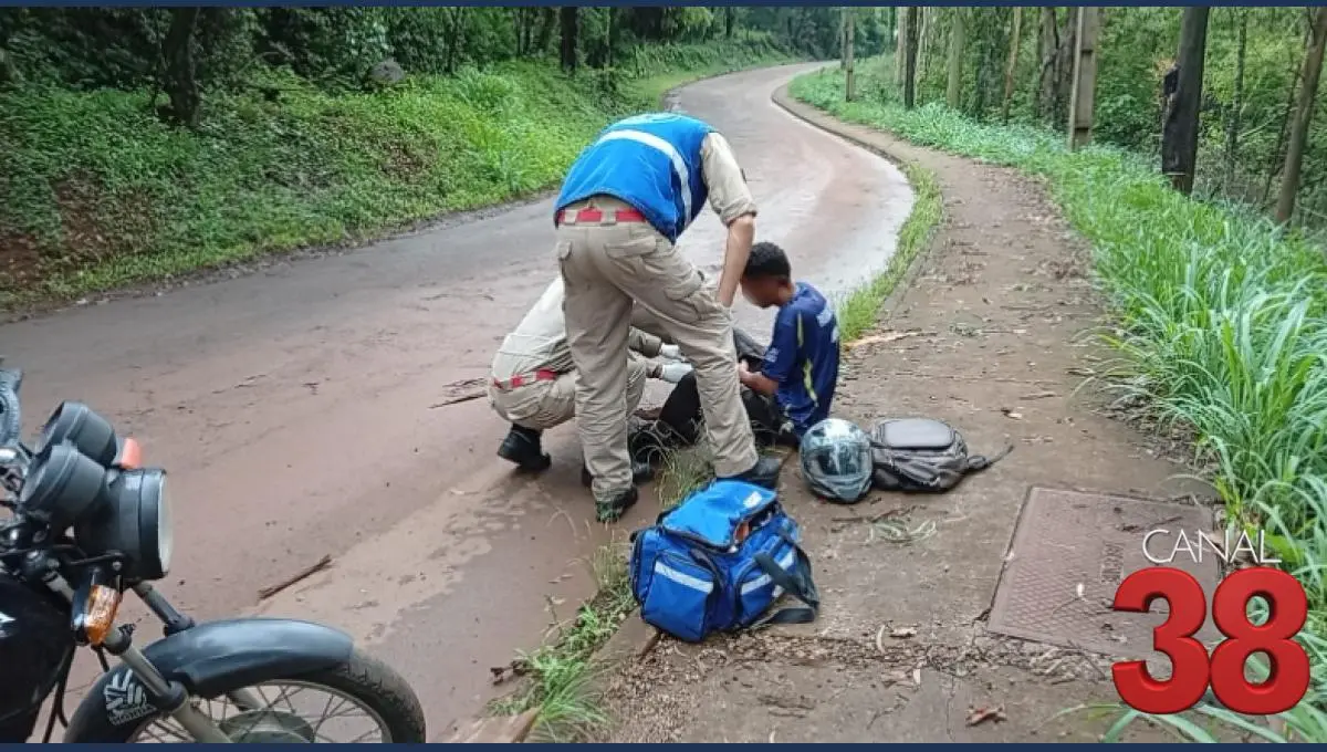 Uma queda de motocicleta foi registrada na manhã desta segunda-feira (3), na estrada Sebastião Piassa, em Apucarana.