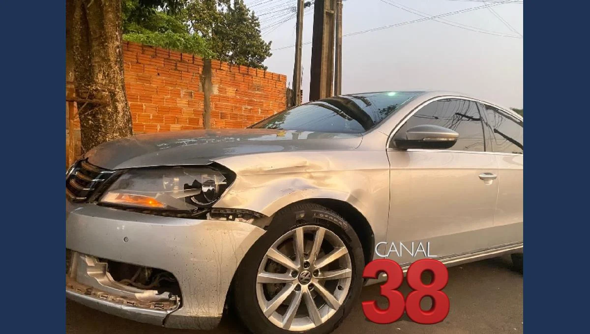 Na tarde desta quarta-feira (28), um acidente de trânsito envolvendo um veículo VW Passat e uma motocicleta Yamaha Fazer foi registrado na esquina da Rua São Simão com a Rua São Marcos, em Apucarana. O impacto resultou em uma fratura no cotovelo esquerdo de um jovem de 18 anos, que estava na moto.