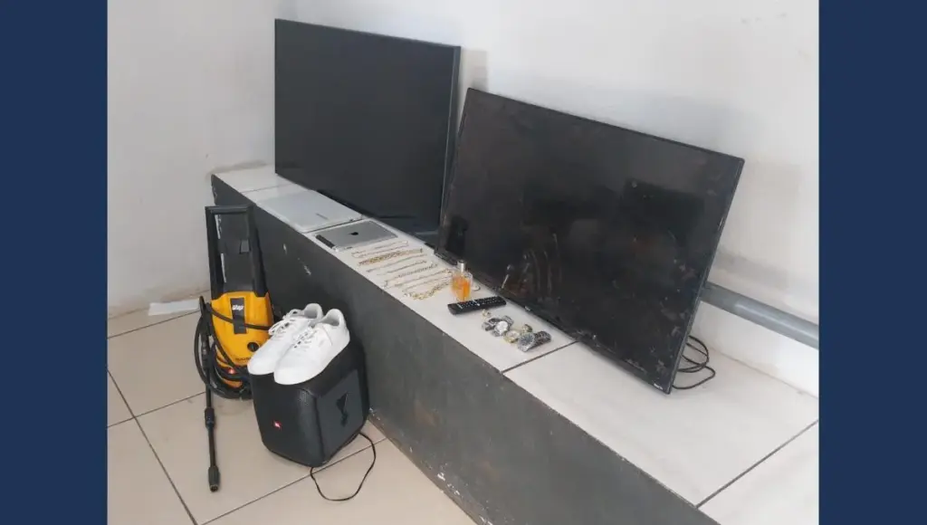 O furto ocorreu no horário de almoço. O morador chegou em casa e encontrou o portão fora do lugar e a janela arrombada. Ao verificar o interior da residência, percebeu a falta de diversos objetos: duas televisões, um iPad, um notebook Samsung, tênis, perfume, relógios, semijoias, uma caixa de som e até uma lavadora de alta pressão.