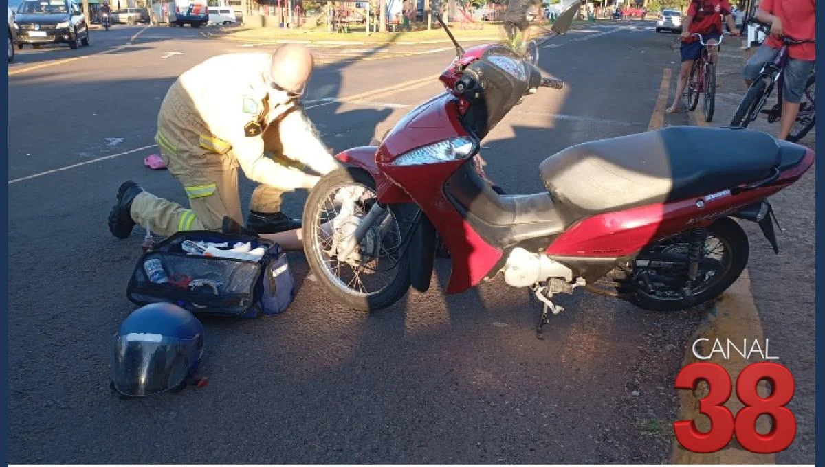 Na tarde desta segunda-feira (11), um acidente envolvendo uma motocicleta Honda Biz 125 e um veículo Vectra deixou duas pessoas feridas na Avenida Central do Paraná, em Apucarana. As vítimas, uma mulher de 33 anos e seu filho de 17 anos, estavam na motocicleta no sentido centro-bairro.