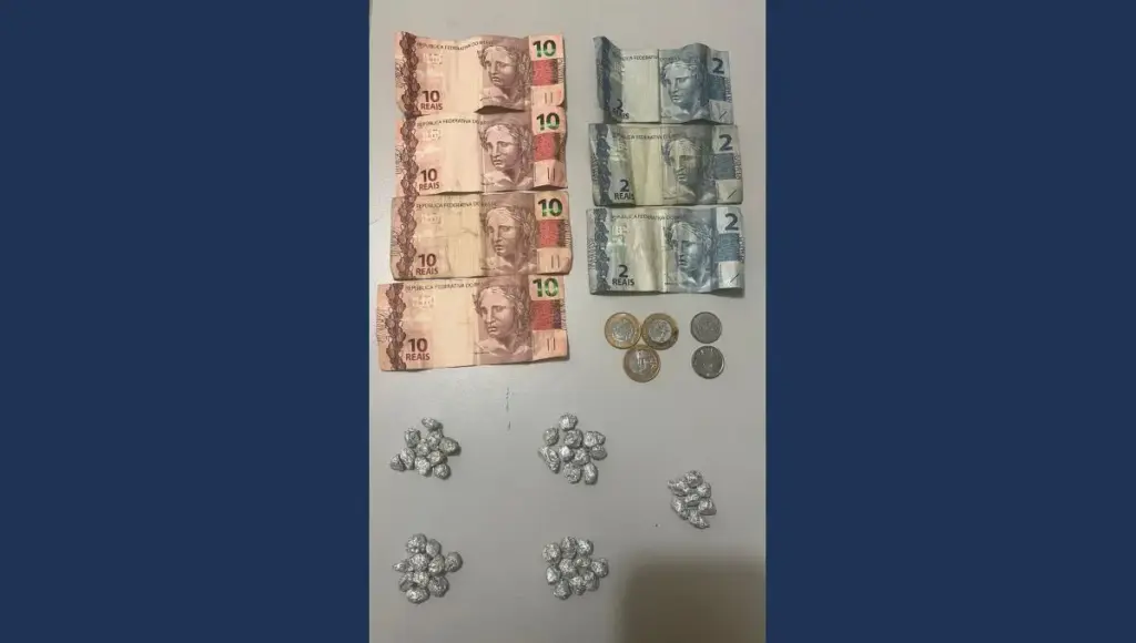 Durante a busca pessoal, os policiais localizaram R$ 50 em dinheiro, entre notas trocadas e moedas, no bolso traseiro da bermuda do abordado. Questionado, o menor confessou que realizava a venda de drogas no local e indicou uma blusa arremessada sobre o muro. Dentro da peça de roupa foram encontradas 17 pedras de substância análoga ao crack.