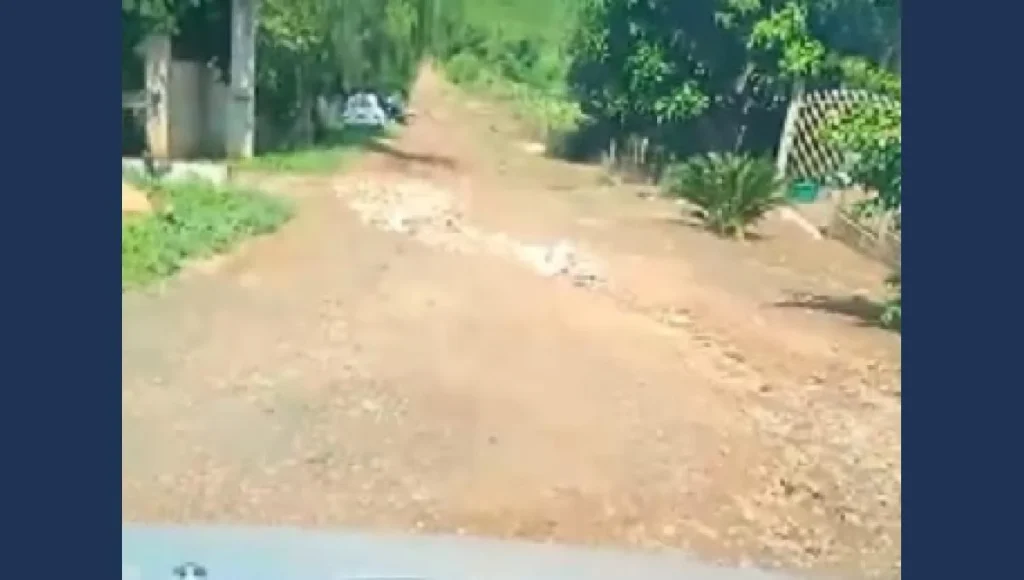 No vídeo, um morador expõe a situação da estrada e o caos causado pela falta de manutenção, ressaltando o risco iminente de ficar impossibilitado de transitar pela região devido aos inúmeros buracos e à lama que se forma durante os períodos de chuva.