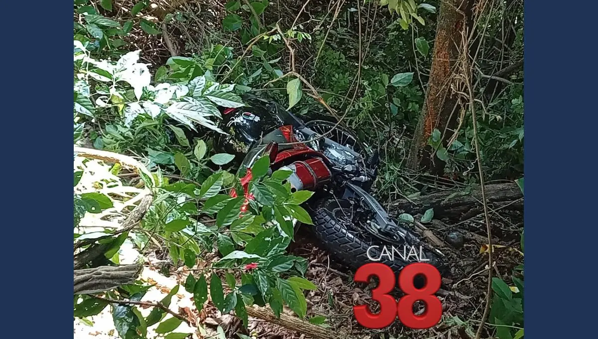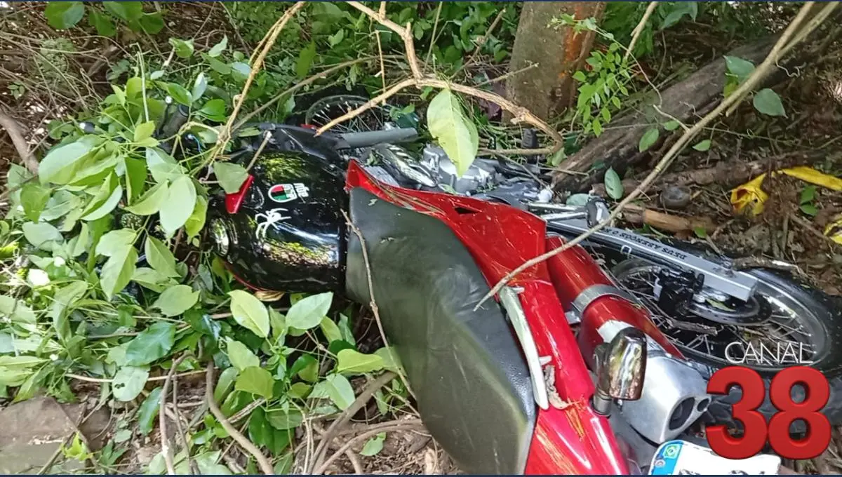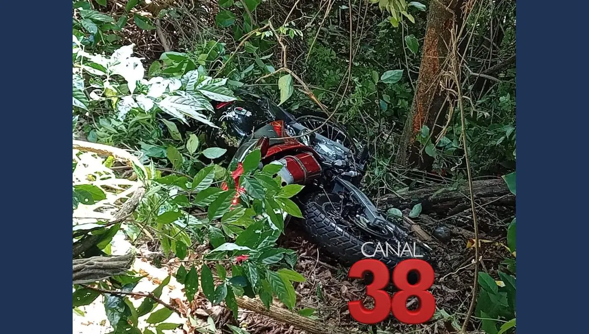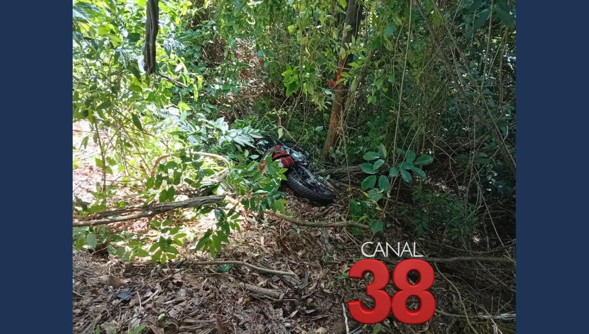 Uma motocicleta Falcon vermelha foi encontrada caída em um barranco na Rua Herculano Amorim Galvão, cruzamento com a César Marcos Navia. Testemunhas relataram que dois indivíduos, que estariam na moto, fugiram logo após o acidente.