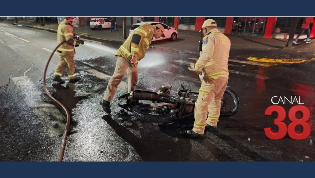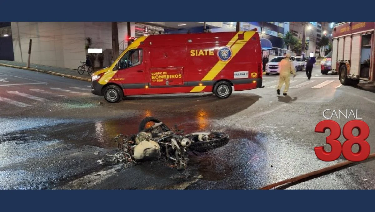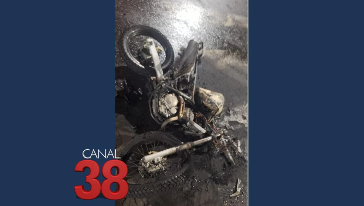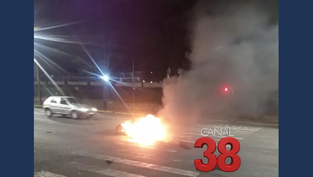 A colisão foi tão violenta que a motocicleta pegou fogo após o impacto, exigindo uma rápida resposta do Corpo de Bombeiros.