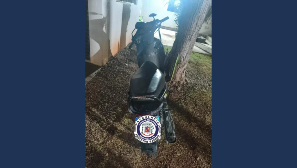 Na noite desta sexta-feira (22), uma motocicleta foi apreendida pela Guarda Municipal de Arapongas durante patrulhamento de rotina na Vila Araponguinha. A ocorrência foi registrada por volta das 21h36, na Rua Faisão.