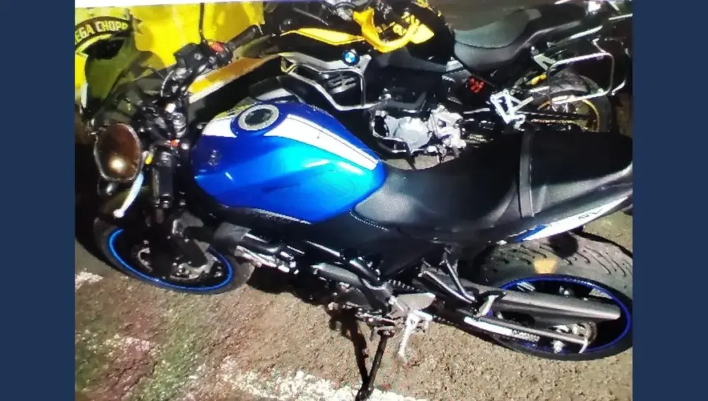 Ao chegar ao endereço, os policiais localizaram uma JTA Suzuki SV650A, que estava com uma chave do tipo micha na ignição, e uma BMW F850 GS, que se encontrava sem a placa de identificação. As motocicletas haviam sido furtadas anteriormente, e imagens do crime já haviam sido repassadas às equipes em patrulhamento na cidade.