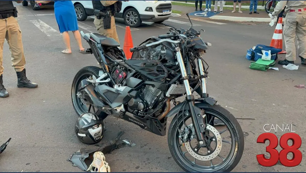 Um grave acidente foi registrado na tarde desta quarta-feira (22), no cruzamento das ruas Perdizes e Canário, em Arapongas. A colisão envolveu uma motocicleta e um carro Volkswagen Tiguan.