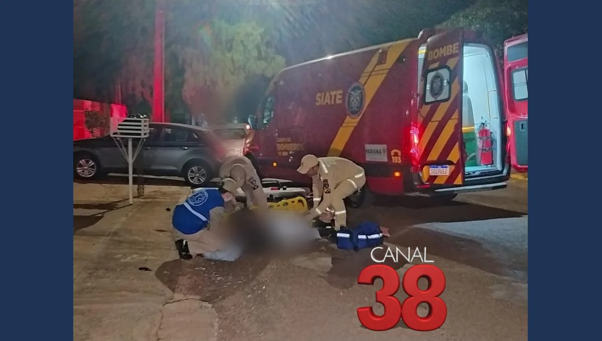 Um motociclista de 25 anos ficou ferido na noite desta terça-feira (05) após um acidente de trânsito na Rua Denhei Kanashiro, no Residencial Raposa, em Apucarana, nas proximidades da APAE. A colisão envolveu uma motocicleta Honda CG 160 preta e um automóvel Volkswagen Polo.