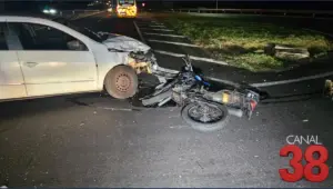Na tarde desta quinta-feira (06), um acidente entre um carro e uma motocicleta foi registrado na Rua Patativa, em Arapongas.