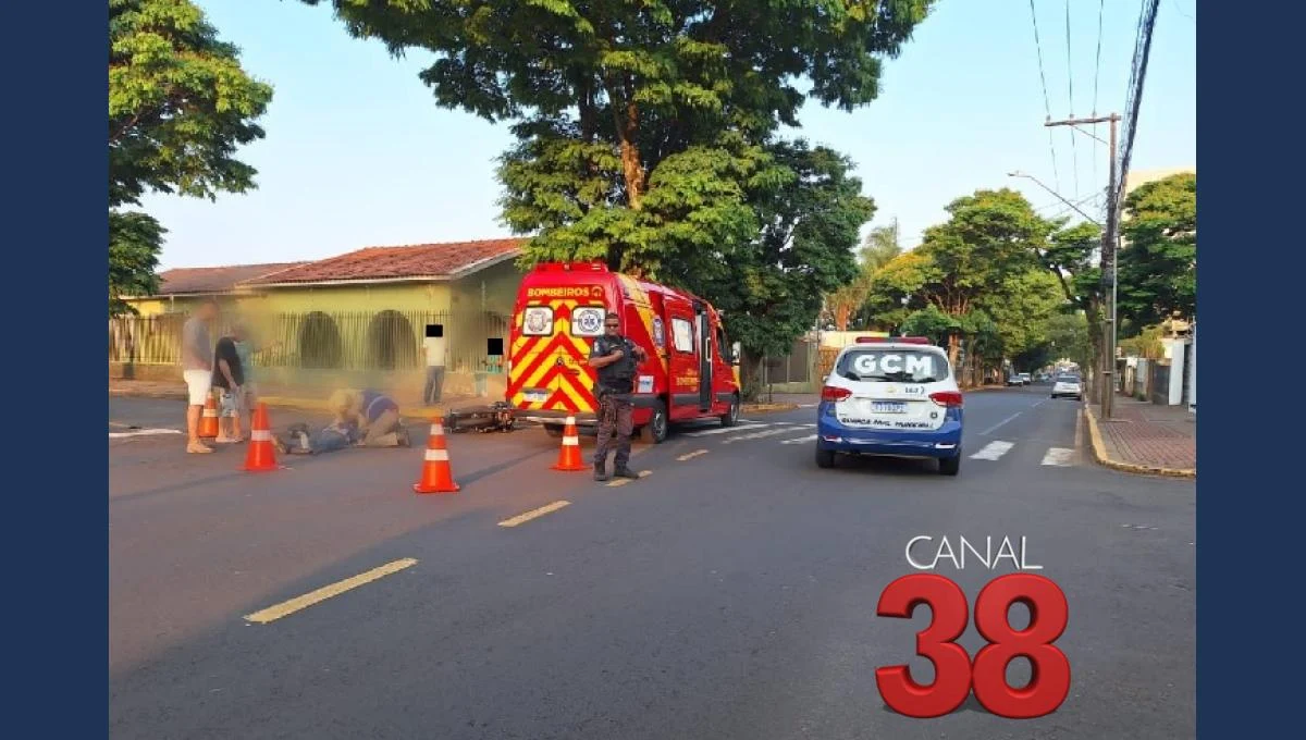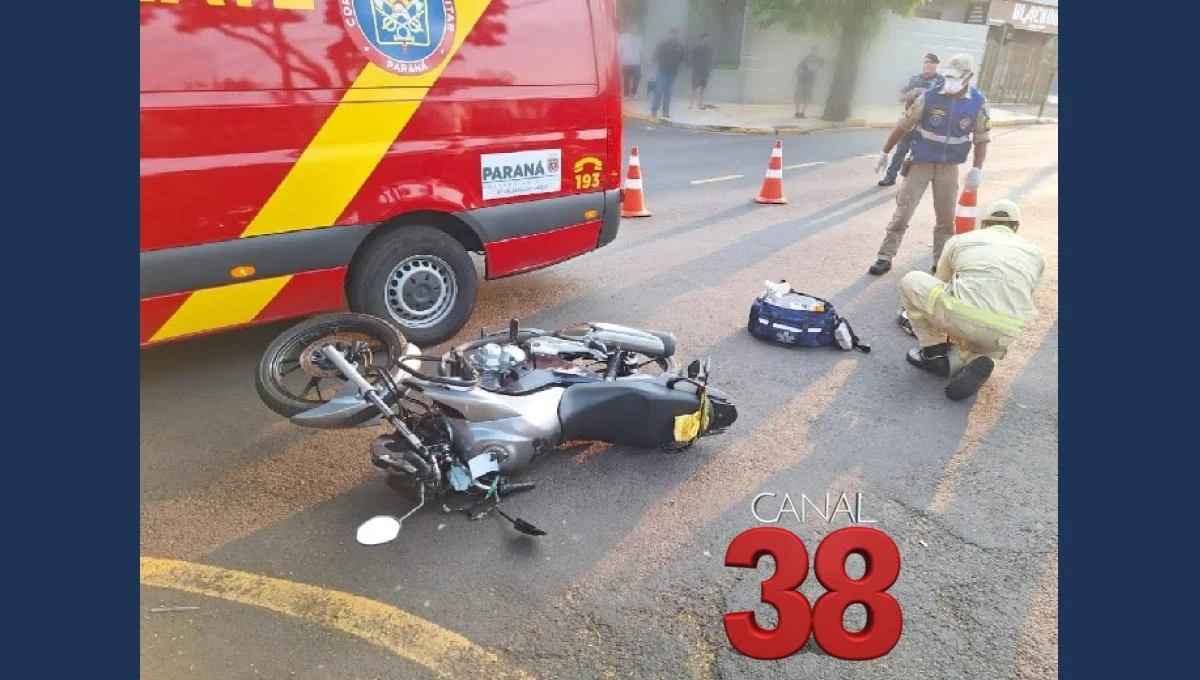 Na tarde desta quarta-feira (16), um acidente entre um Fiat Palio e uma motocicleta ocorreu na intersecção da Rua Padre Severino Cerutti com a Rua Ouro Fino, no centro de Apucarana.